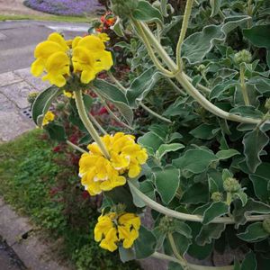 エルサレムセージの花が咲き出しました。🤗 大きくなりすぎて木質化してきたので、小株だけ残して処分したけれどまた大きくなりフェンス越えしています。🎵