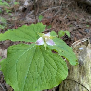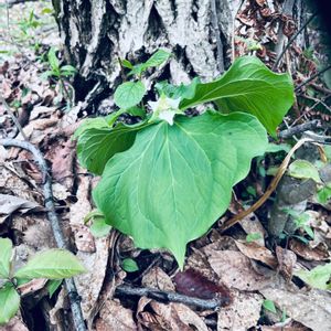 あちこちに生えまくっているエンレイソウ☘️ ここら辺のは紫の花のが多いです。