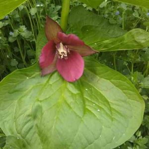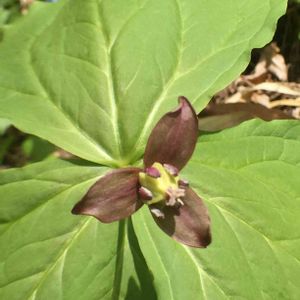 八重咲きエンレイソウより先に オオバナエンレイソウと、 こちらの赤花が咲きました。