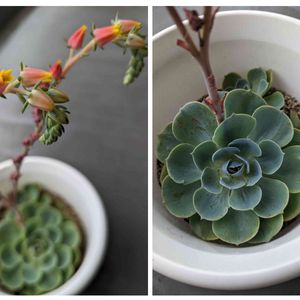 今日のお花🌸エケベリア ここのところの晴天続きで、焦げ多肉を いくつか出してしまいました🥲 慌てて遮光🌞☁️ 七福神の花芽も上がってきました このまま順調に育ってくれるといいな💚