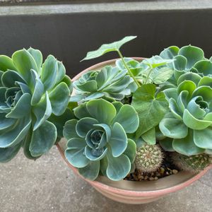 今日のお花 エケベリア🍀 鉢からはみ出す勢い… はみ出している七福神サマ🥰 これからの季節も頑張って育ってくださいね♪