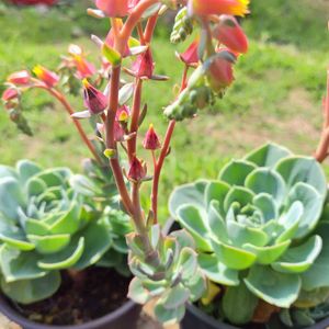 今日のお花 💚🧡エケベリア🧡💚 美しく 優雅な葉の間から なんて 可愛らしい お花が咲いてるのでしょう👀💖 ( ◜‿◝ )♡ 🏷ビューティフルサンデー 🏷ニコニコ日曜日 参加させて頂きますね💚🧡🩷