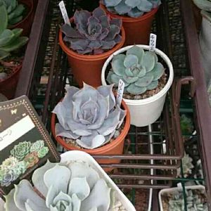 今頃お盆帰省中の購入覚え書き① 上左から、数珠星、タウラス、ラウイ、神童、北極星、桃太郎(サボテン)、シャビアナ トゥラフルズ、シャビアナ、ラウイ×トップシータービー、雪びな、ふっくら娘、桜牡丹、アメトルム。 港北コーナンにて。