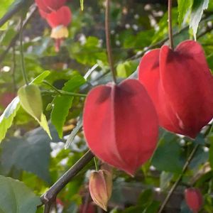 チロリアンランプ ウキツリボクとも呼ばれている園芸鑑賞用植物。 ホオズキに似てますが、今の時期はコレです。 花言葉 「恋の病」 「さまざまな愛」 「憶測」 この季節の色合いが好きです。