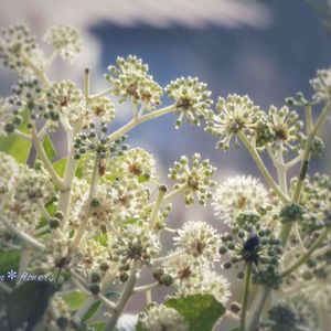 ヤツデの花ですよ😉 蜜が甘いらしいです😅 虫がたくさんやってきます😆