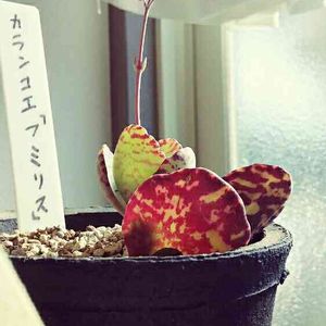 カランコエ フミリス どうしたら? 真ん中の頃の色合いに 戻せるの? 寒くなって赤い色は出て来た でも 地色はベージュ色にはならない