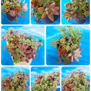 多肉植物🌿 寄せ植えの一部 姫秋麗とブロウメアナのお花が 可愛いです💕 赤いひと粒は❣️クラッスラ紅稚児😀 🏷ちっちゃいものクラブ 参加します