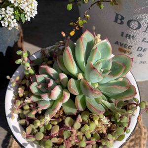 白い縁取りが可愛いらしい覆輪丸葉万年草✨子株があちこちから顔をのぞかせています💚