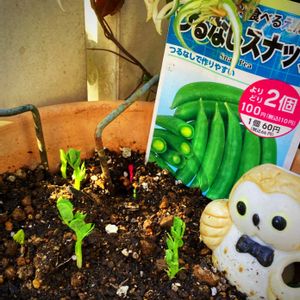 🏡 今日の庭から𓂃𓂂ꕤ*.゚ つるなしスナップエンドウの芽出し🌱🫛🙌💕