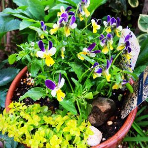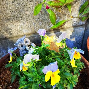 今日のお花仕事🌼💙🍃 花ロマンすみれ𓂃𓂂ꕤ*.゚ ☘️ベロニカ レペンスサンシャイン 寄せ植えしました🙈︎💕︎ 💦一日一鉢…