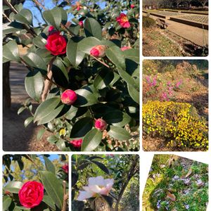 🌺🍃ヤブツバキ 💛❁⃘*.゚小菊 💟パンジービオラの花壇 ༘⋆✿シバザクラ