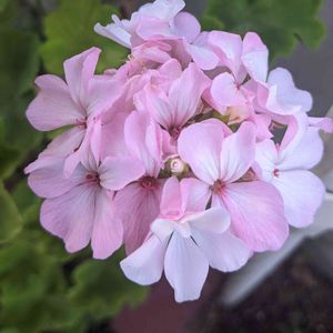 高温障害もあるけれど (ゼラニュームアンティーク❣️) 優しい色のゼラニューム💗 二種💗 咲いております💗 植物には厳しい夏ですネ‼️ 今日も猛暑日予報 皆さまも 暑さ対策して 乗り換えましょう🤗 ♪今日も楽しく過ごしましょうね🎵🤗🥰 💚🤍💗備忘録記録💗🤍💚 月齢4.7(正午) 北西の空不気味な空模様でした。