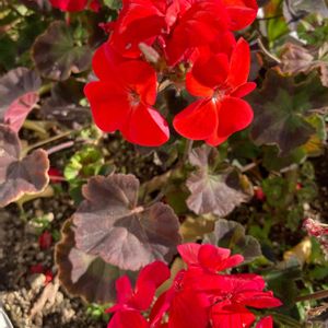 ❀ゼラニューム❀ 真っ赤❤️開花しましたぁ~✨ 斑入りの葉もお気に入りです💞🌿🎶