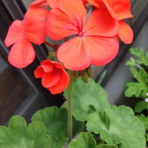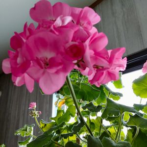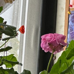窓ぎわのゼラニウム❗ 忙しく、放ったらかし状態、一輪だけ花が咲きました😅
