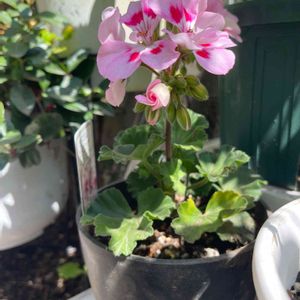 地味な画像が続いたので・・・ ゼラニューム カリオペのレッドスプラッシュとソフトコーラルです。 1年で10号鉢いっぱいのサイズになりました✌️ 庭での冬越しもへっちゃらでした👍 蕾ラッシュが始まりましたよ🤭