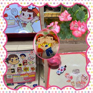 ゼラニュームは、四季咲? 通年で咲いている様な気がします。 大阪に帰った時に、地下鉄に乗り換えようとしたら、ペコちゃんのガシャポンがありやってみたら、髪を留めるクリップが出ました。😍💕👍 不二家が閉店して、1店舗だけやってるので、帰省する度に訪れるのですが、 「四国の人」って、認識して頂いておりました。…(^^;) 右下のハンカチサイズの、メガネや携帯を拭くマルチクロスをプレゼント🎁してくれました❣️ 🏷️ペコちゃん祭り