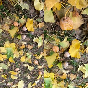 こんばんは。 先日、自転車で母を見舞いに行く途中で🤳しました。 大通りの車道と歩道の境目にあるドウダンツツジの植栽の上に、イチョウの落ち葉が。 紅葉と黄葉の共演ですね。 No.515