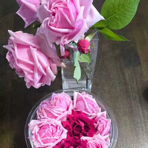 おはよう👋😃🌧️ございます 雨でバラ🥀が重くなってるので カット✂しました どちらも強香なのでリビング中 ローズ〰♡🩷♡幸せ💕クラクラ😵🌀