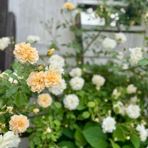 夏は咲かせないほうが良いみたいですが、まそらは今まで元気がなく、ようやく蕾がたくさん出てきてくれたのでちょっとだけ咲かせました。 グラハムトーマスは元気ですねー! オデュッセイアもなんとか 四季咲きのつるバラ、ドンファンが一番元気です✨春からずっと咲いててくれて満足・満足🥰🥰
