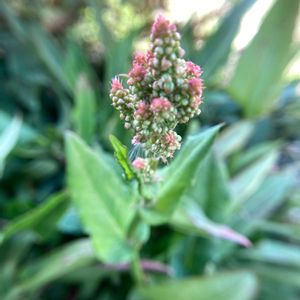 すかんぽの蕾がほころび始めました。 ソレル、オゼイユ 若い葉っぱをサラダの付け合わせに。 シュウ酸多いので、食べ過ぎ注意😊 葉っぱの付け根が鏃型なのがギシギシとの違いとか