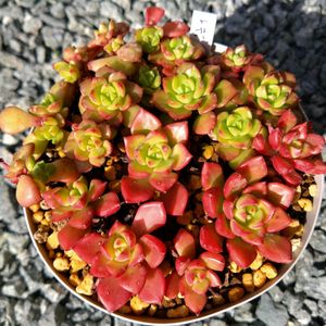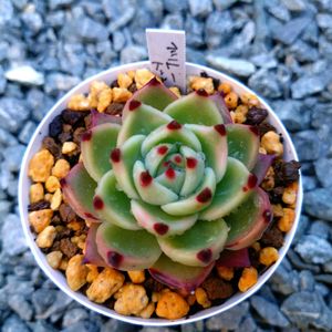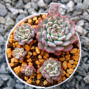 こんばんは😄 今日は寒い1日でした。 全国的に風が強かったみたいですね💦 今日は仲良くしてくださってるchieminさんから素敵便が届きましたのでご紹介させてくださいね🥰 GSで初めての多肉交換会です😆 ①可愛らしいエケベリアさん達こんなにいっぱい分けて頂きました😍 1つ1つご紹介させてくださいね😚 ②ティファニーブルー 名前からして可愛らしい🩷 色白さんの爪系さん🎵 大きくなったら絶対可愛い子😆 ③苺花 手に入りにくい多肉アンさんの苗😊 うちにもいてますが、とても見れた姿ではなく🤣 分けて頂けてめちゃくちゃ嬉しい😆 ④龍鱗蓮華 ずっとお安い子を探してたんですがなかなか無くて🥲 こんな綺麗な子を分けて頂きました😍 嬉しすぎるー😍 ⑤ラブリーハート(ピカチュウ) 知ってる子なんですが、実物を見るのは初めてで😃 何故ピカチュウなのか良く分かりませんが誰が付けたんでしょうね😂 ラブリーハートの方が合ってると思う😜 暴風の中での植え付け寒かったけど、苗があまりにも可愛くて植え付けながらニヤついてました😘 chieminさん、大切に育ててる子達いっぱいありがとうございました❤️ 私からの苗は年明けてからとの事なのでお待ちくださいね😉 たいした苗はありませんが😅 写真が5枚しか載せれないので、明日もまた続きでご紹介させてもらいます🥰