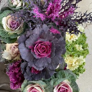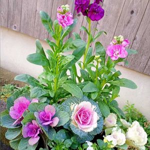 只今🕘️、積もる程ではないですが ❄雪が散らついています 初めてTry🔰の葉牡丹🖐️ ストック💜🩷と、💛ビオラで寄せ植えしてみました。 ちと、ストックの丈が高すぎる気もしますが…、JA産直店でのリーズナブルなお買い物😄 もう少し間に🌿何か足そうかな🤔❣️ 葉牡丹の可愛さを再発見でした👍💕