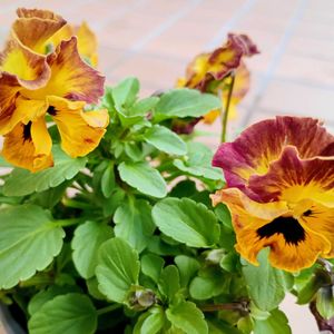 記録も兼ね 3投稿 させて下さいネ🍀💕 ビオラも📦一緒に😄 🥀❤️🧡💛ちょっと珍しい(…?)色合いのコ ビオラ「レインボーウェーブ🌈」 ARB=アプリコット ローズ ビーコン 🏷️です 花数が増えるのも楽しみです😃💓 小ぶりな、なごみももか・しんしんも2輪目の開花❣️
