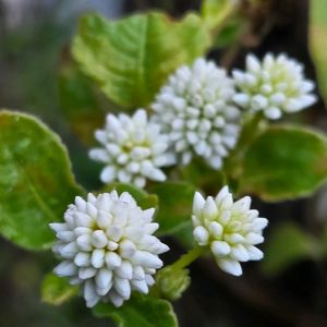 *ポリゴナム* 白いヒメツルソバのお花が少し咲いています。吊り鉢にしています。モリモリを期待していたが根詰まりか夏の暑さでか?ひっそり咲いています。