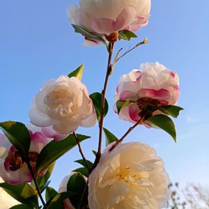 お気に入りの山茶花🤍🩷 また今年4年ぶりに見る事が出来ました🥰 昨日、今日とこちらは爽やかな晴れ☀ 🌇夕陽を浴び、満開の山茶花📱💕 アルバムに残しておきたくて🍀🤗🍀