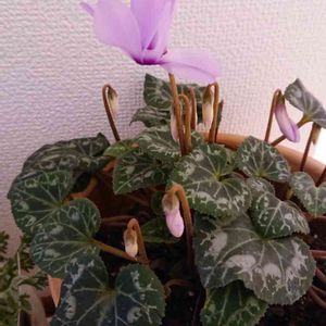 今日 お買い物に 行ったついでに ホームセンター ガーデン館を 覗いてみました。 シクラメンは 持ってなかったので、値下がり品 の このシクラメンを 買いました。 ちょっと 華奢な感じに 見えました 。 同じ商品、次の 元気なのが いっぱい ば〰️ん と 入荷したので、 これら 数点は 半額以下に 下がっていたので、、それじゃあ〜 買おう〰️か と 。。。 😅 ちょっと ほっそりさん ♡ 私には 難しそう〜 。。💦