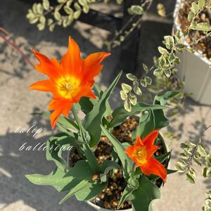 今朝のチューリップ… 7:27〜7:47 アンカーのミニチューリップ バタリニーブライトジェムが咲きだす ① パンビオの寄せ植えからユリ咲一本 ② ジュテームだって♡ 黄→オレンジ ③ ミニのバタリニーブライトジェム🟡 ④ 3本しか咲かなかったバレリーナ ⑤ 誤って引き抜いてしまったバレリーナ