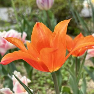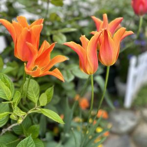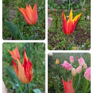 庭のチューリップたち ①②③オレンジ色のチューリップバレリーナが咲いて裏庭が一層賑やかになりました♪ 周りのごちゃごちゃはスルーしてくださいね😅 ④⑤昨年秋に球根を初めて植えてみた原種チューリップ🌷 クリーム色に赤いストライプが可愛いです♡ 🏷️カラフルな火曜日 🏷️春色チュ!チューリップ♡ 🏷️オレンジ色の花も好き 参加させてください
