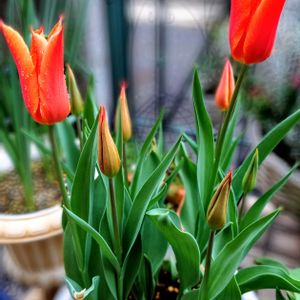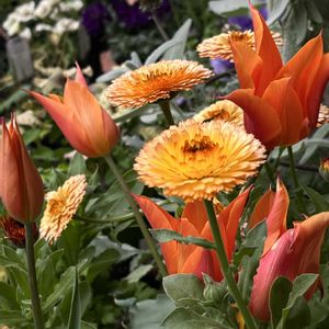 ヒヤシンスが終わりオレンジのユリ咲きチューリップが咲きました👏 トリプルデッカー寄せ植えです☺
