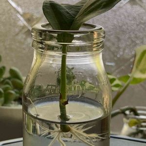 最近この子達がずっと元気がなく、根も出ないので枯れてしまわないかとヒヤヒヤしてました。(水換えを忘れていたり部屋が暗かったりと杜撰なお世話をしてしまってました💦) 昨日試しにメネデールを買って希釈してあげてみて朝見たところ、ちょっと葉っぱにハリが出てきたかな?という感じがします。 1番左の子は根らしきポツポツが伸びてきてました。良かった……やっぱり水だけじゃなくて栄養も必要みたいです。さじ加減が難しい……🤔
