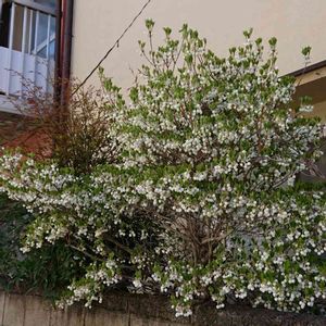 4/9(火)① ドウダンツツジが満天星らしくなってきました‼ 花が先に咲き始めますが、葉がない時より 少し葉が出てきたくらいか、 もっと緑色の葉の中に白い小さな花が咲いている時が好きです。