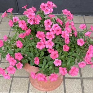 スーパーチュニアビスタ シルキーピンク 残暑厳しい酷暑ですね💦皆さんのお庭はどうでしょうか 我が家、夏になると1日中日当たりが良すぎて、花たちは直射日光を浴びる形となります 購入した苗もほぼほぼ枯れてしまい、元気に残ってるのはこのビスタぐらい 3年、4年越しのマーガレットたちもダメになり結構凹んでいます😢