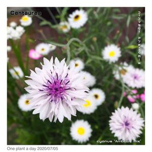 One plant a day. Centaurea cyanus ‘Antique Mix’ コーンフラワー アンティークMix 今年の寄せ植えの一番上部を担当😊小さな花がたくさん集まった感じのふわふわした花びらです😉