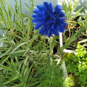 種まきした矢車菊が咲きました💠 MIXと書いてあったけど、今のところ、蕾はみんなこの色。 一つぐらい他の色があるかなぁ🌸