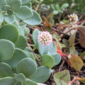 《ツルヒメソバ〜まるで金平糖》 日本にはロックガーデン用として明治期に導入された多年草🌼🌸 花は集合花で、小さい花が1cmほどの球状に集まった金平糖のような形をしている🤭 園芸店などの紹介でも「金平糖がいっぱい咲く花」などと紹介されることも珍しくない🌸🌼