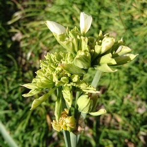 スイセンの仲間かと。初めてみる緑色の花なので名前を知りたい。鎌倉の覚園寺に咲いていました。