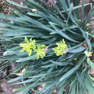毎年咲いてるけど ??蕾? 花が咲かないうちに萎む😣 毎年10数年そう思ってた 調べたら 日本水仙の奇形で 成長点の異常で石化したものらしいです そう思って見ると 緑色💚で可愛いのかも😆