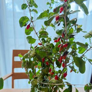 昨日畑で埋もれている クコの実を発見 花瓶に入れました