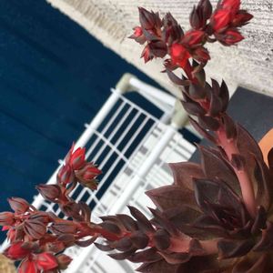 おはようございます☀️ 台風一過の青空で気持ち良いですね✨ 早朝から先ほどまで、取り込んだ子達を出す作業してました💦 朝の一枚 瑠璃殿錦✨ コンクリ鉢と相性が良く、気に入ってます。