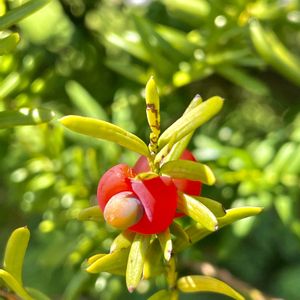 キャラボク イチイ科イチイ属 常緑低木 別名キャラノキ 雌雄異株の裸子植物 花期3〜5月 果期9〜10月 庭木としてよく見られる。 初秋に赤い実を付ける。 種子は球形で杯状で、赤い多汁質の仮種皮の内側におさまっている。 外から見ると、赤い湯のみの中に丸い種子が入っているような感じである。果肉は食べられるが、それ以外は毒があるそうです。 🏷️真っ赤な火曜日 に参加させていただきます。