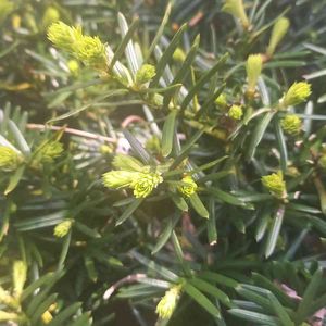🌿キャラボク🌿🌸 (イチイ科 イチイ属) いつも行く植え込みにイチイが…と思ったらキャラボクだと思います🙏 2023 3/21訂正しました。 コメント💬頂いた皆さん ごめんなさい🙏 イチイの変種 育てやすいそうです。 雄花🌸だけれど見ることが出来て良かった。 小さい小さい5㎜ないかな。目立たないお花🌸 雌花はなさそうだな。 知らないだけで どこかの植え込みにあるかもだね❤️ 見てないんだなぁ😅 3/21