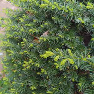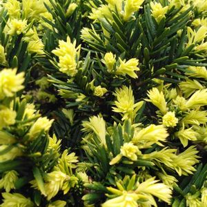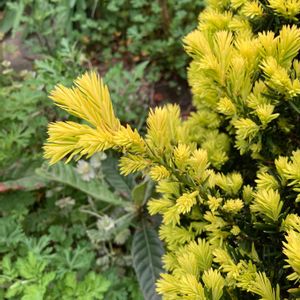 針葉樹、庭木、低木、春に明るい黄色い新芽がきれいです