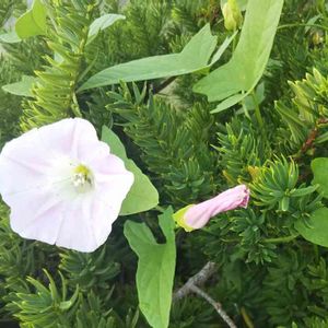 「どーも、私がこの木(伽羅木)の花ですww(byヒルガオ)」 まねっこ😆