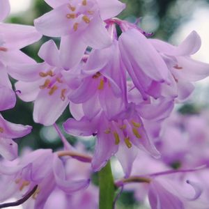 薄紫とピンクの シラーカンパニュラータが咲きました 紫のお花にはストライプ模様が入っていて素敵です スパニッシュブルーベル 釣鐘水仙ともいうそうです 確かに🤔見た目通りの名前だヮ〜