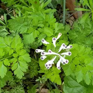 ムラサキケマンの品種である「シロヤブケマン」が咲いていました。