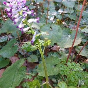 何の花かな 以前花の名前調べた記憶も?? 教えて頂きました シロヤブケマン もっと赤紫色が強めな物はムラサキケマンとかいうらしい